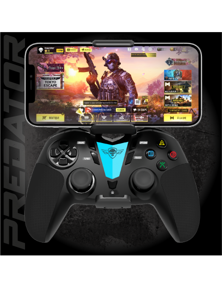 HARD DE PLAY Terminou duro para executar em sua tela de toque! Transforme seu smartphone em um console real. Predator é multiplataforma Bluetooth wireless controlador e é executado com todos os smartphones e tablets Android (Android 10 e versões mais altas), iPhone, iPad (iOS 13 e versões mais altas), e até mesmo Android TV caixa, Apple TV, PlayStation 4 (PC apenas no modo de fio)